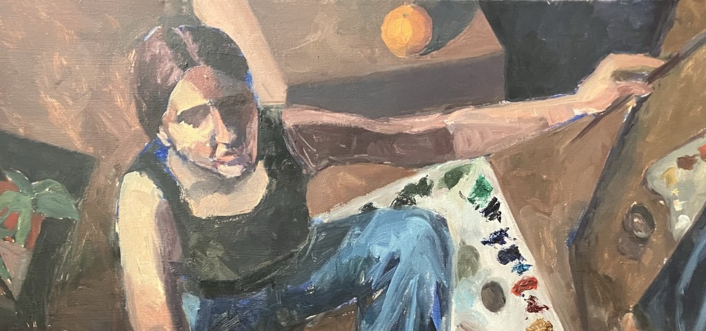 So: here we go! Above is a detail from a life-sized self-portrait I did at university, which I was unsatisfied with for a number of reasons. But now I can look at it more generously, and appreciate the composition, and certain moments of how the paint is handled. There is something deeply satisfying in asking the pixels of today to portray the brush strokes I made decades ago.