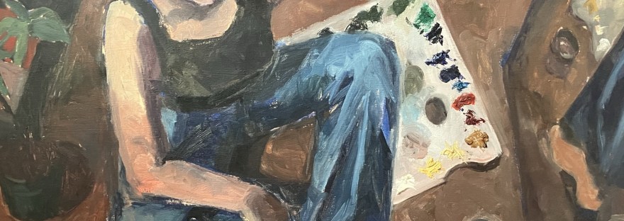 So: here we go! Above is a detail from a life-sized self-portrait I did at university, which I was unsatisfied with for a number of reasons. But now I can look at it more generously, and appreciate the composition, and certain moments of how the paint is handled. There is something deeply satisfying in asking the pixels of today to portray the brush strokes I made decades ago.